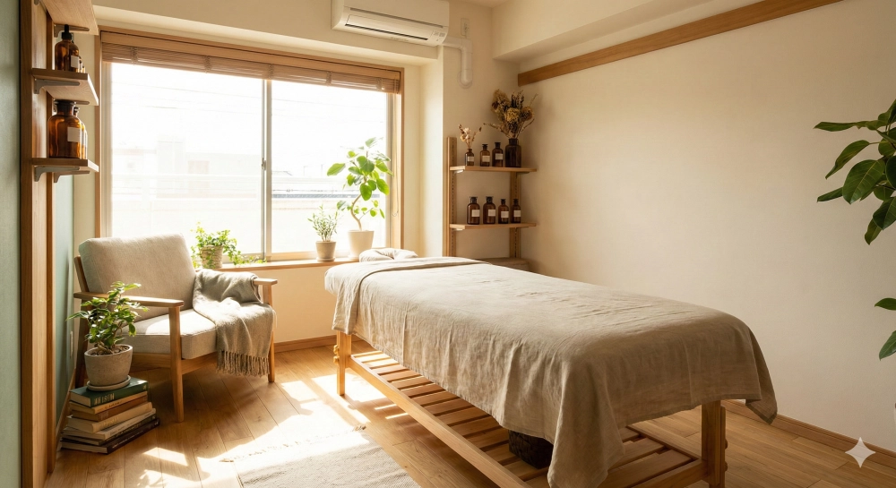 都会の喧騒をシャットアウトした空間で、 アロマの香りに包まれながら、深く長い呼吸を取り戻す。
